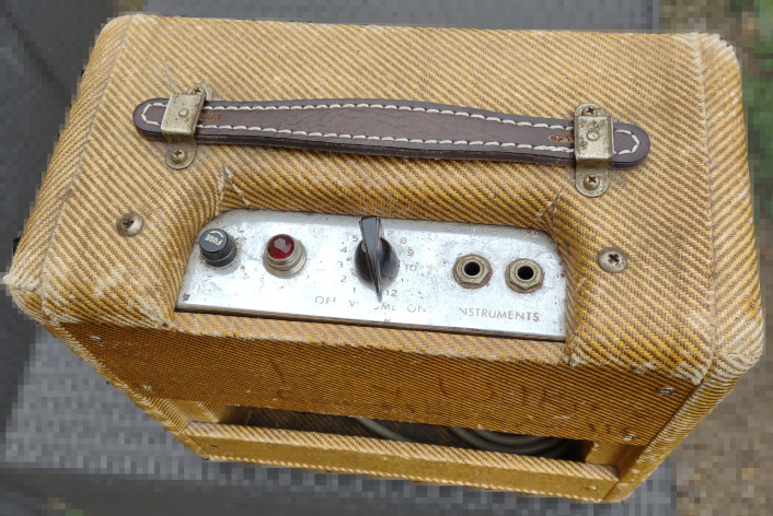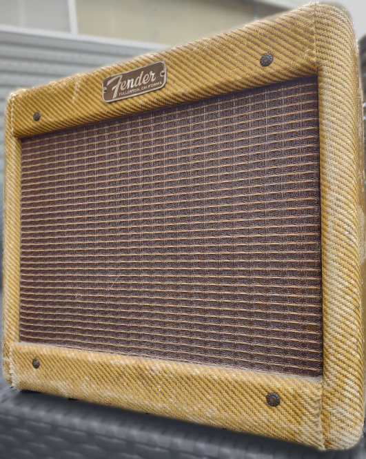 En 1955, Angus Young naissait, la première DS de Citroën apparaissait et c'est également l'année où ce petit Fender sortait d'usine. Tous ses composants sont d'origines, et ça sonne, (on va quand même changer les condos par sécurité et une bonne révision) mais quand même 70 ans le 'tiot et encore de belles années devant lui ! ![]() |