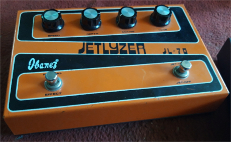 Quelques perles de pédales des 70's : Jen double sound, montarbo automatic flanger, ibanez jetlizer. Une autre époque : la miniaturisation n'était pas à l'ordre du jour :