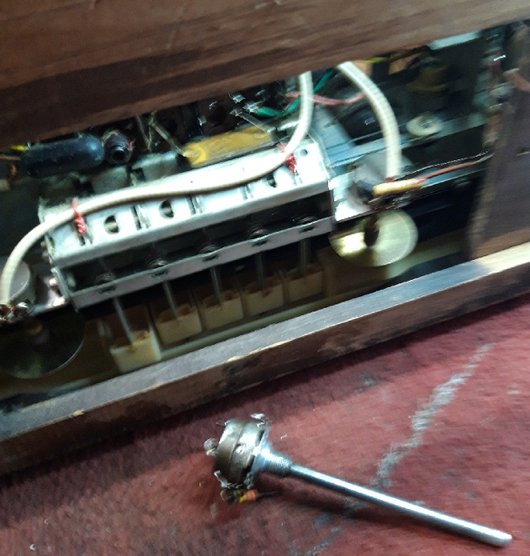 restauration d'une bonne vieille tsf Telefunken Gavotte de 1955 ; chaud le démontage du potentiomètre de volume:
